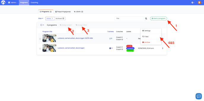 As an administrator, you have an overview of all of your programs. From this overview, you can: